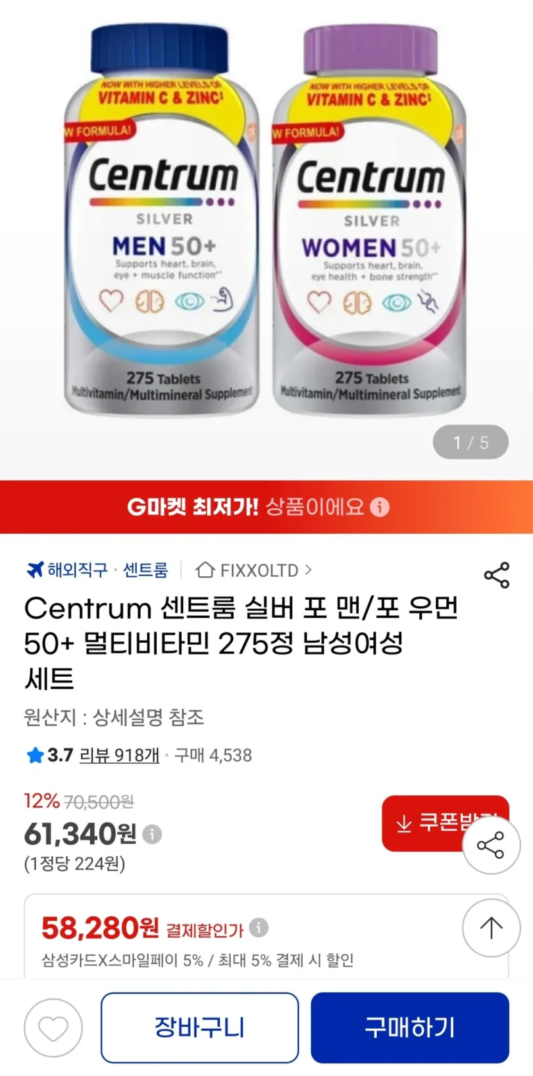 Centrum Silver cho Nam/Dành cho Nữ 50+ Vitamin tổng hợp 275 Viên Bộ Nam Nữ