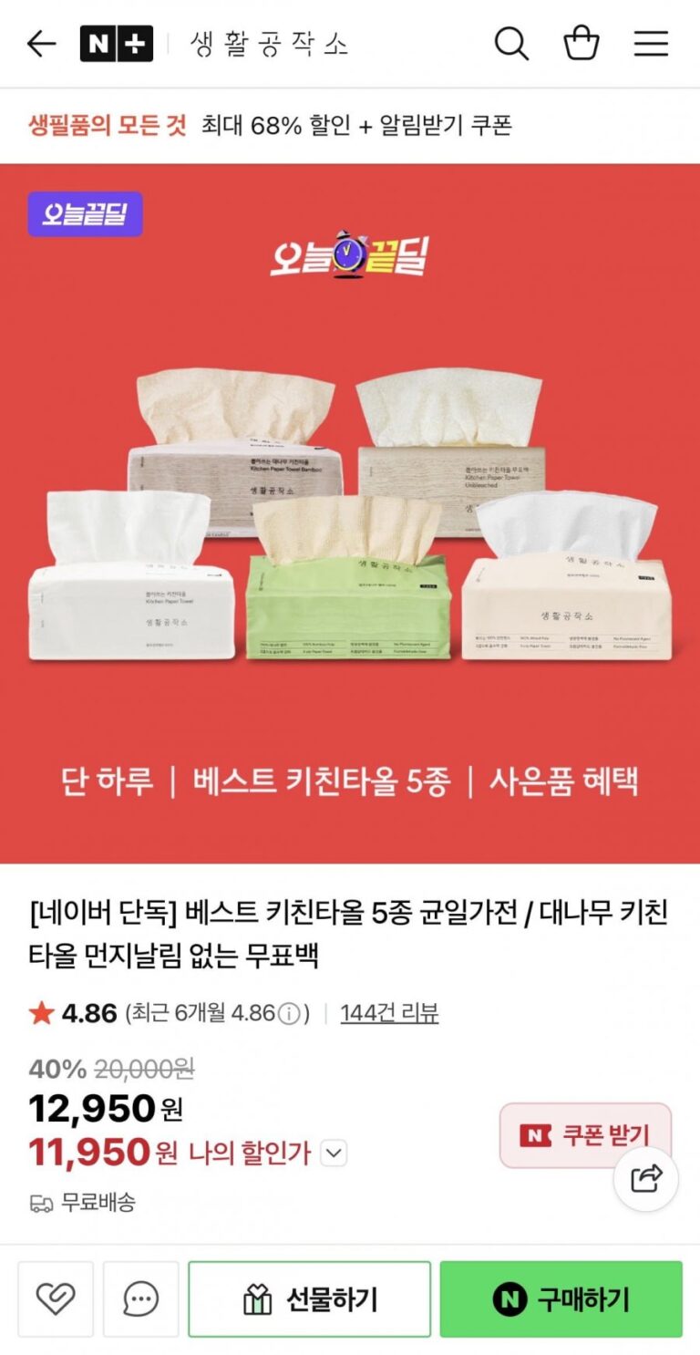 [Naver] Living Workshop 9 gói 100 khăn lau bếp bằng tre (12.950 KRW/miễn phí)