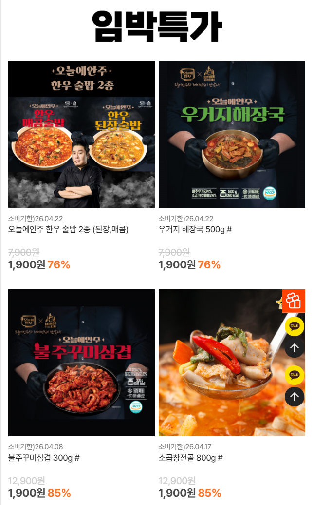 4 loại giá đặc biệt sắp ra mắt (cơm, canh giải rượu bò 500g, táo tàu 300g, Lẩu lòng bò 800g) mỗi loại