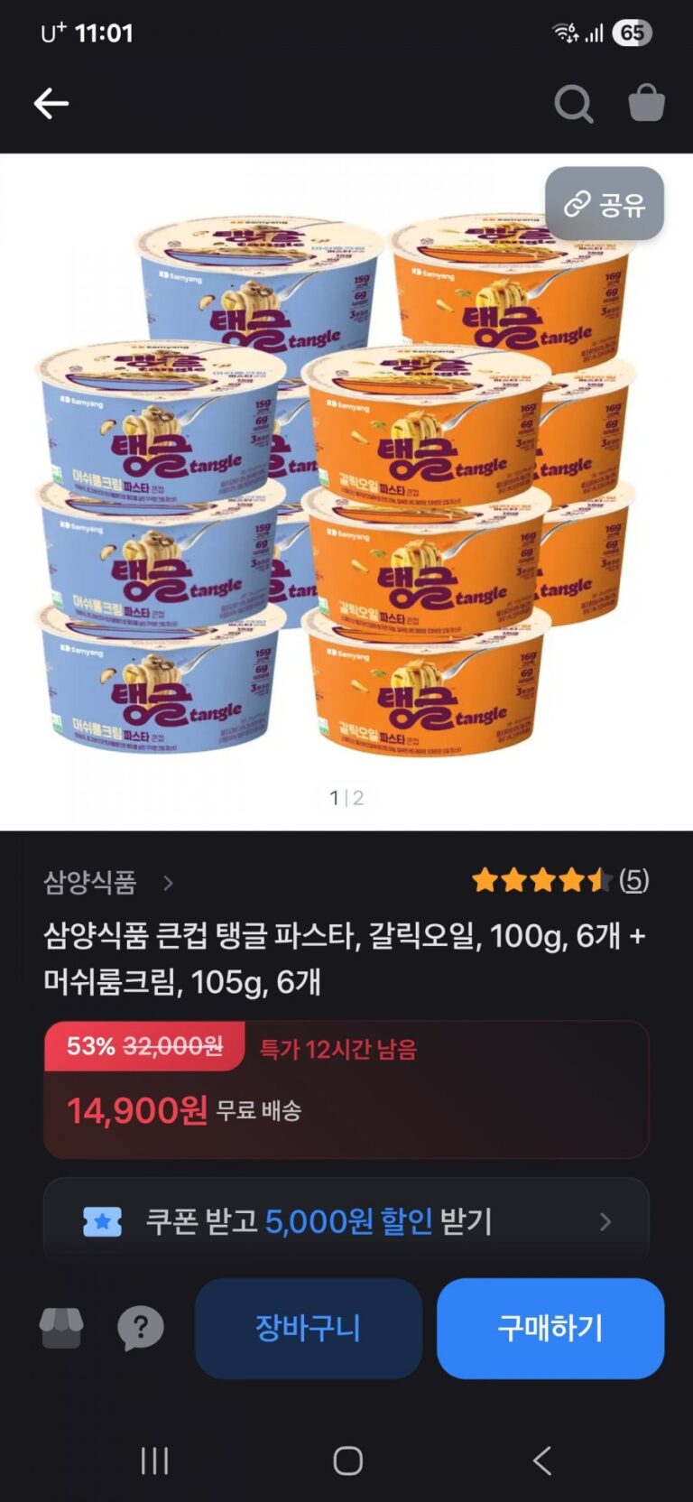 Samyang Cốc Lớn Mỳ Ý Dầu Tỏi 6 Miếng + Kem Nấm 6 Miếng