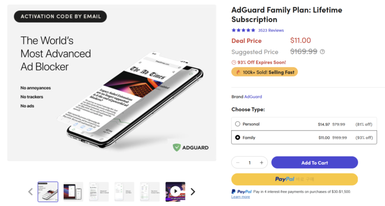 Gói chặn quảng cáo trọn đời của AdGuard (Gia đình)