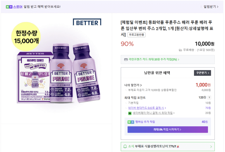 [Naver] Nước ép mận 120g x 2 gói (Thành viên Naver miễn phí vận chuyển)