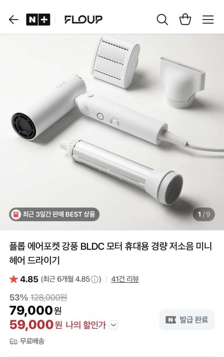 Máy sấy tóc mini Flop Air Pocket Gió mạnh BLDC