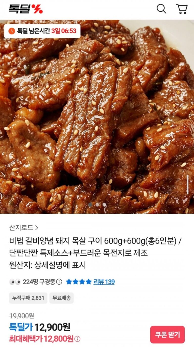 Thịt vai heo nướng tẩm gia vị 600g+600g (tổng cộng 6 phần ăn)