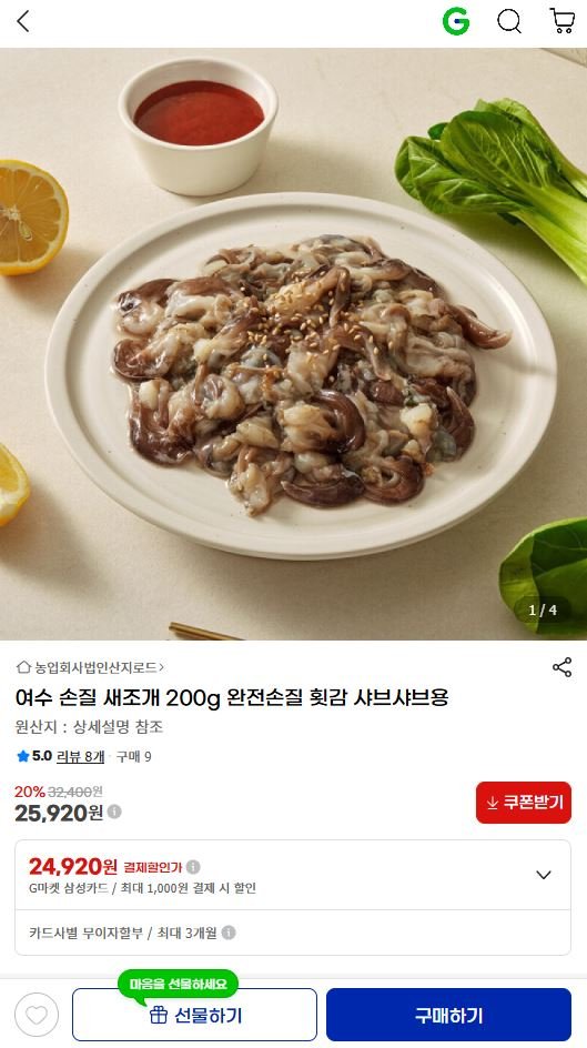 200g sò chế biến sẵn cho Yeosu shabu-shabu