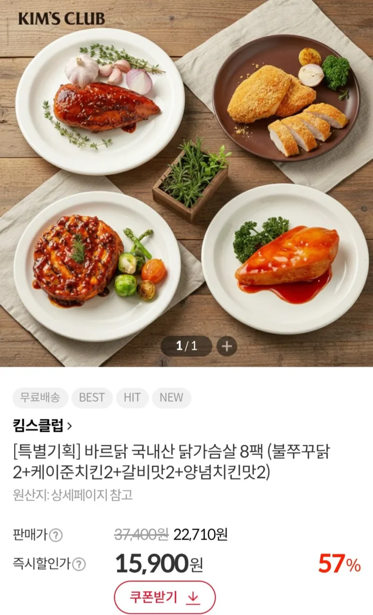 8 gói ức gà nội địa Bardak (2 gà Buljjukku + 2 gà Cajun + 2 vị sườn + 2 vị gà tẩm gia vị)
