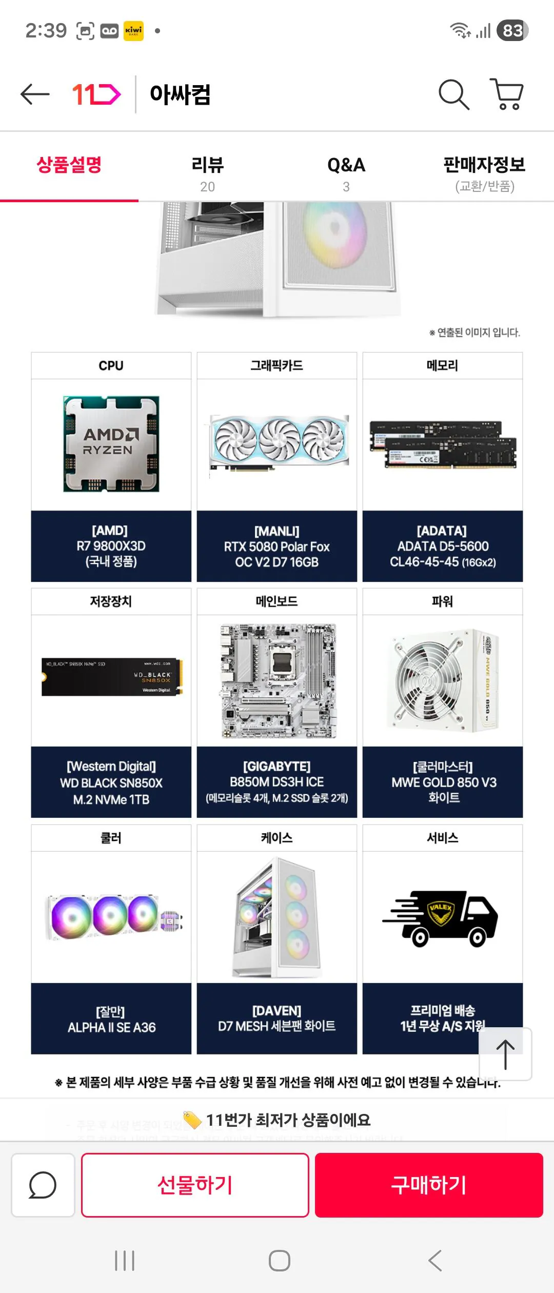 ![[11th Street] AMD 9800X3D+RTX5080+32GB+1TB White/B850M (3.699.900 won) (Miễn phí)](https://image.hotdeal.zip/images/2026/02/02/3dbc4241b6c651f07a0d02b55bc90149.webp)