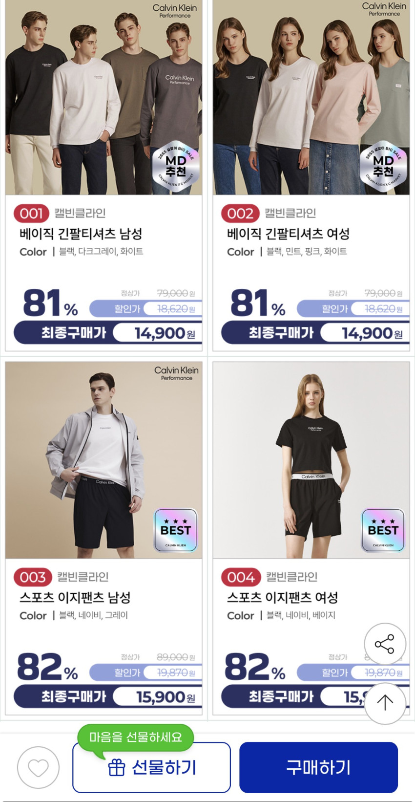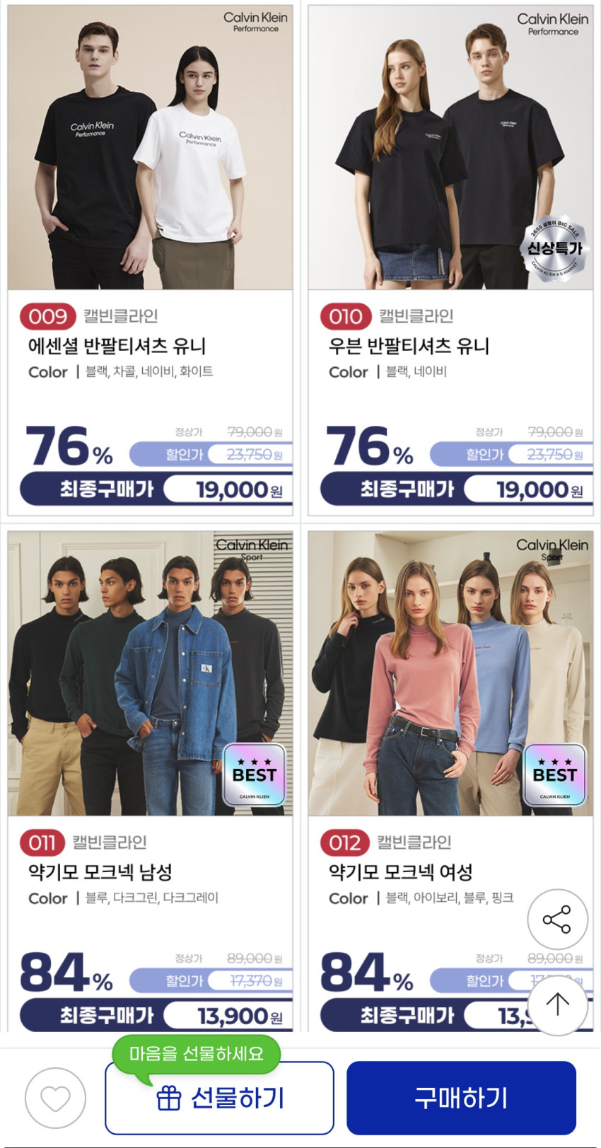 · Áo thun ngắn tay cơ bản của Calvin Klein Giá khoảng 18.000 won Có 4 chiếc màu sắc