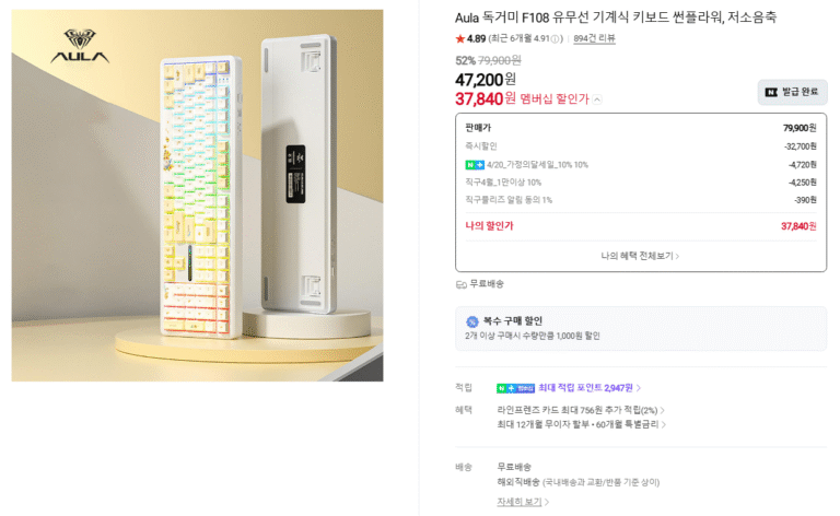![1000001887.jpg [Naver] Aula Tarantula F108 Pro bàn phím không dây và có dây đầy đủ trục xanh gió (40.980 KRW) (miễn phí)](https://image.hotdeal.zip/images/2026/04/20/15dee89af3bcfb1a015d45c2f723befb.webp)