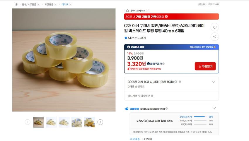Nếu bạn không phải là câu lạc bộ U, nó miễn phí với giá 3.900 won~ Tôi nghĩ sẽ rất tốt nếu sử dụng nó để đóng gói, di chuyển, đóng gói thông thường, v.v. khi buôn bán hàng hóa đã qua sử dụng.