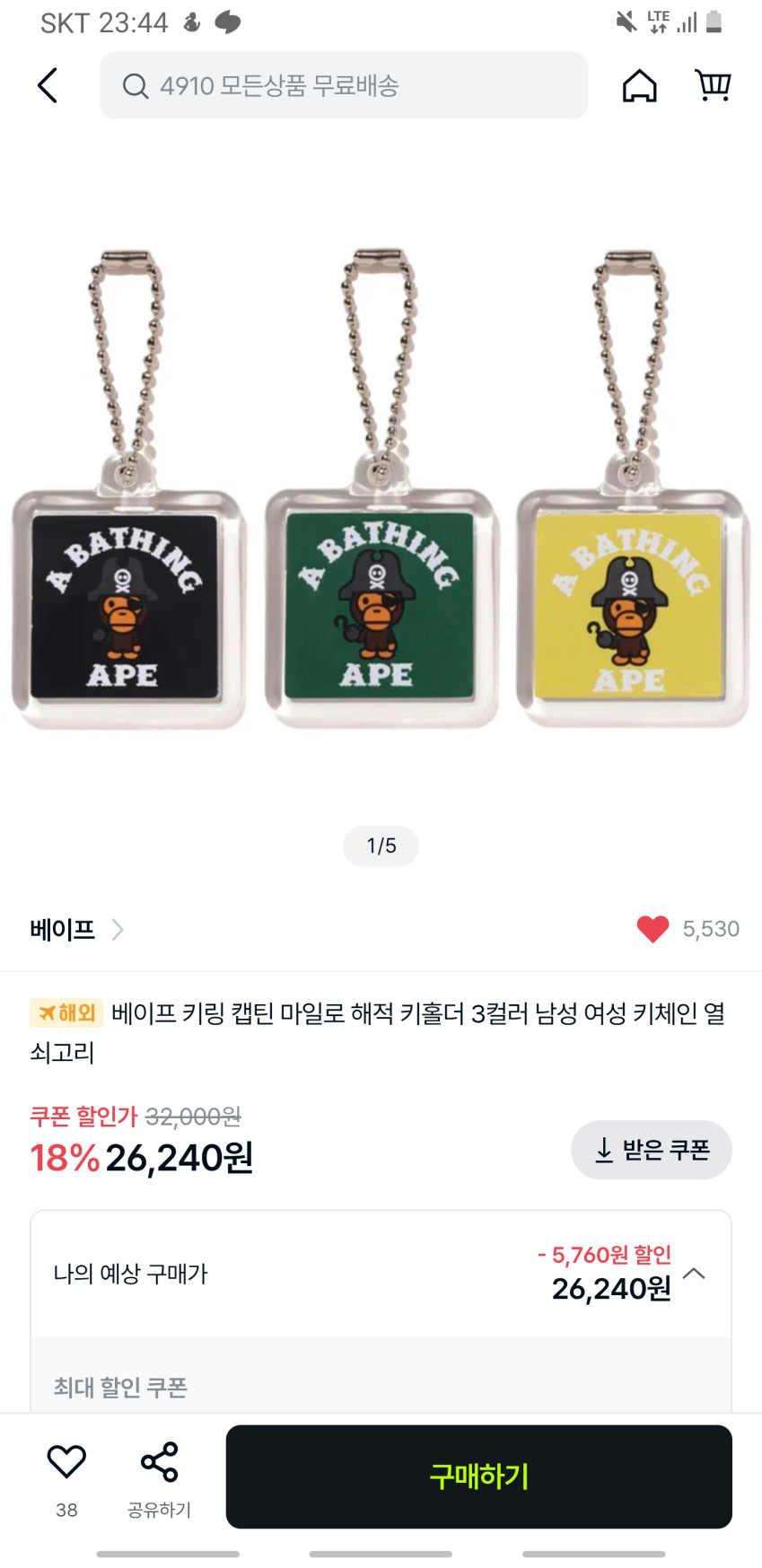 BAPE Captain Milo Pirate Key Holder 3 loại 2.6 shot
