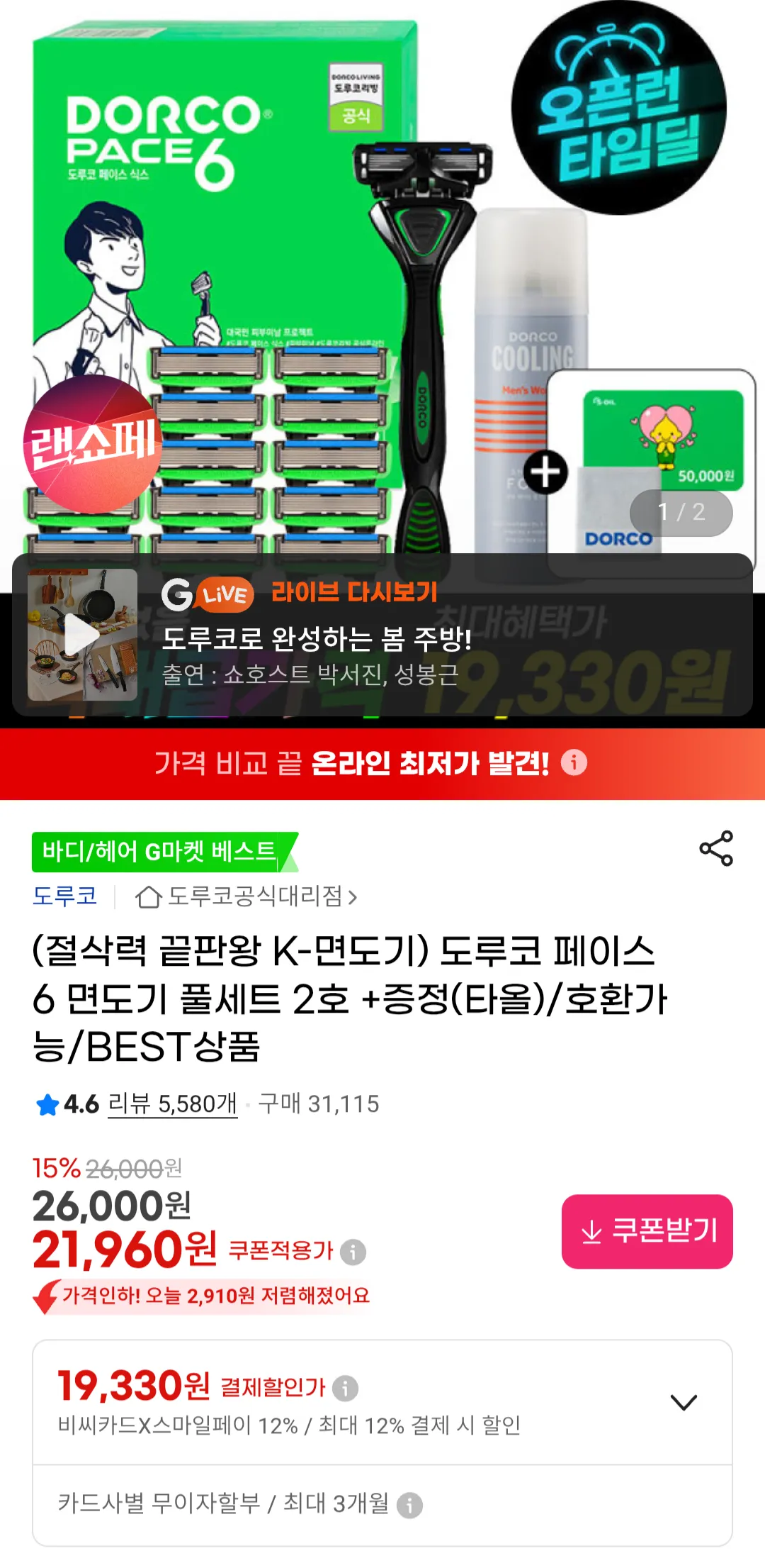 Dao cạo Doruco 1 lưỡi tổng cộng 13 bọt cạo râu 74ml khăn miễn phí 20.430 won Có vẻ rẻ