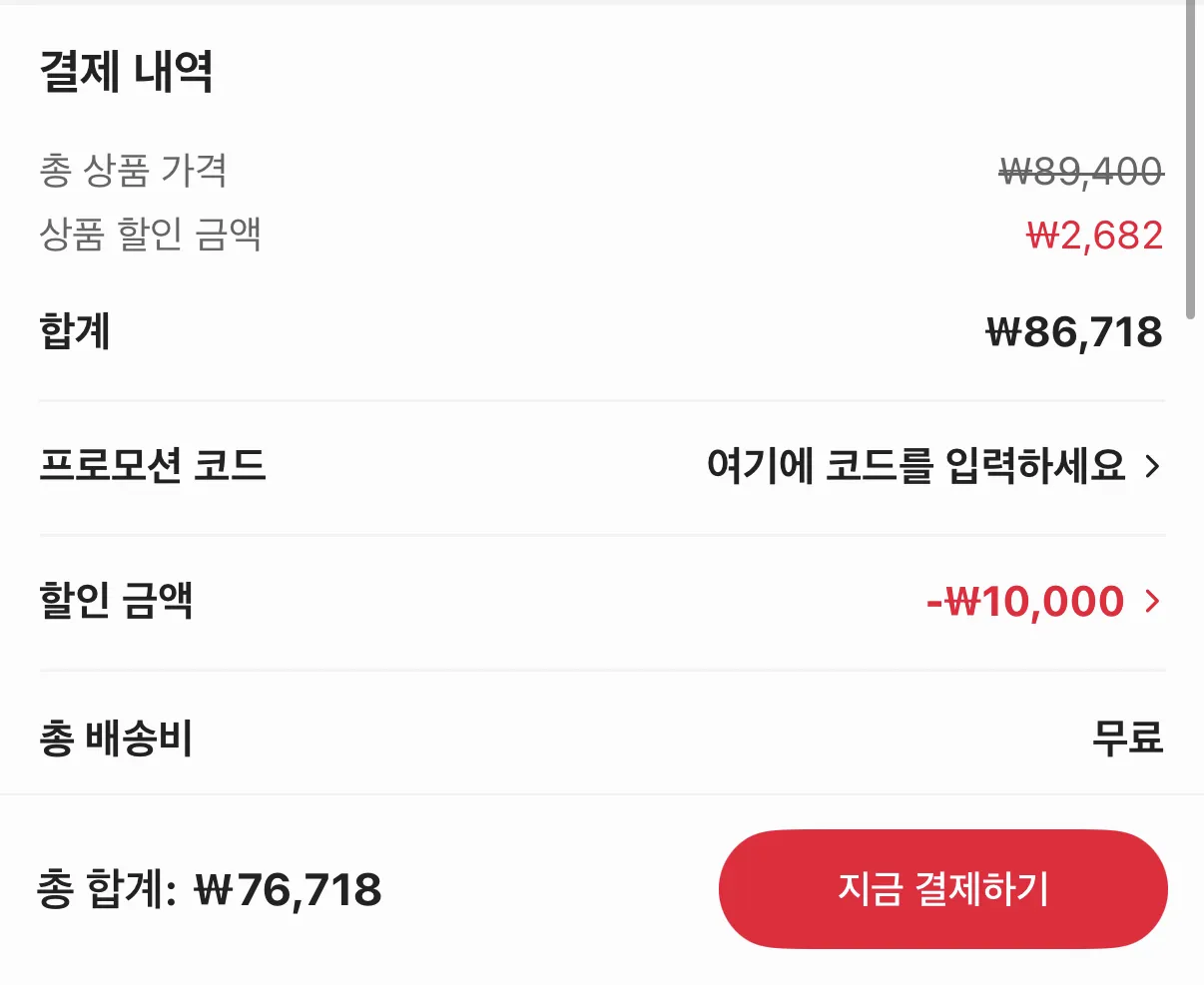 Chi phí cuối cùng là 76.718 KRW khi áp dụng mã giảm giá AEKS07