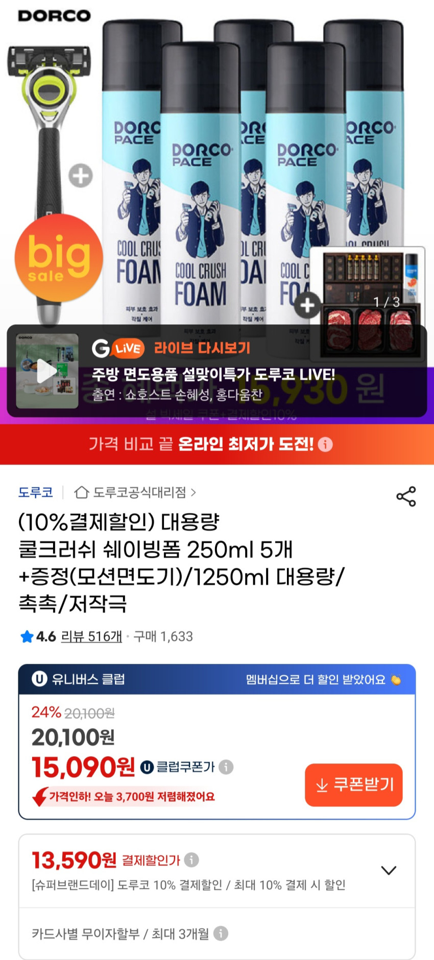 Chứa 5 bọt cạo râu Cool Crush + dao cạo Nó có giá khoảng 16.000 won