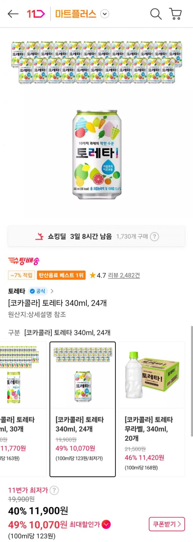 Chọn 10 quả to và 2,4kg đóng 2 quả với giá trên. Một số lượng là 12.000 won nên bạn cần kiểm tra số lượng.