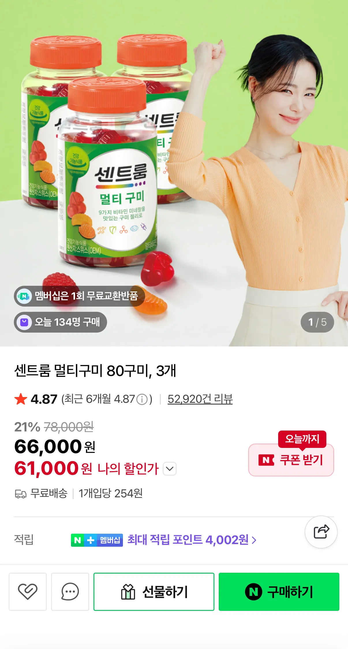 Nếu áp dụng tổng cộng 240 viên kẹo cao su thì giá sẽ khoảng 254 won mỗi viên. RaHơn 50.000 lượt đánh giá và xếp hạng cao