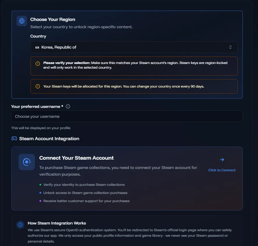 Đặt và liên kết khu vực với Steam của bạn tài khoản