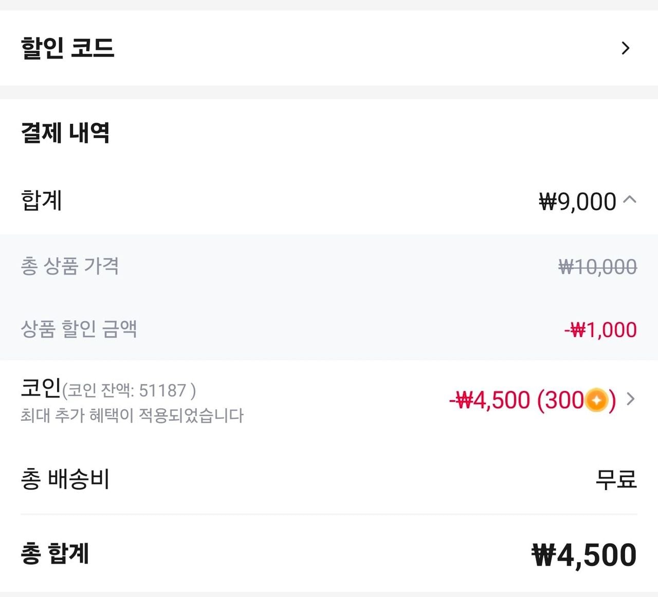 Giao hàng miễn phí với giá 4.500 won