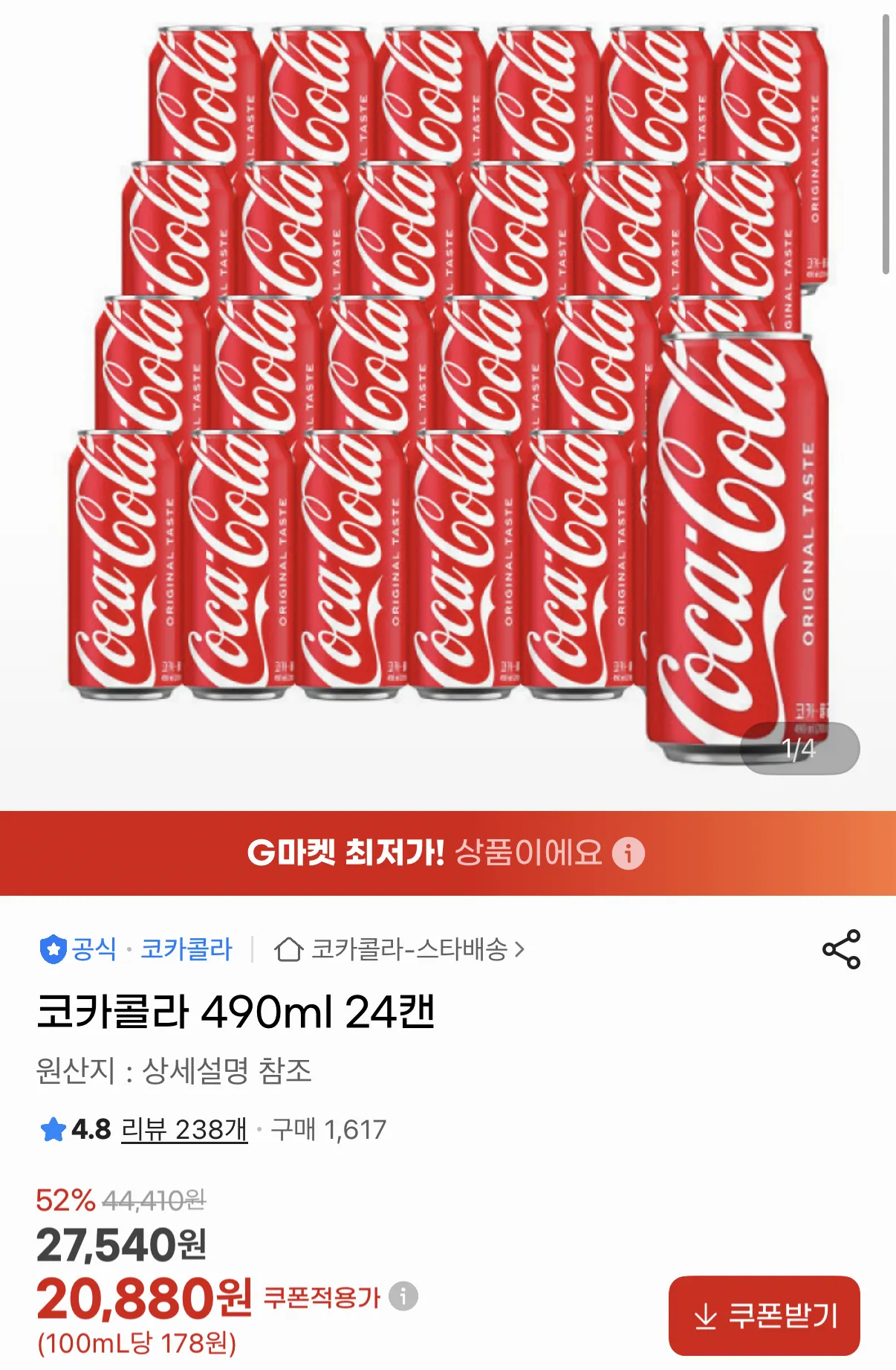 Giá khoảng 870 won mỗi lon