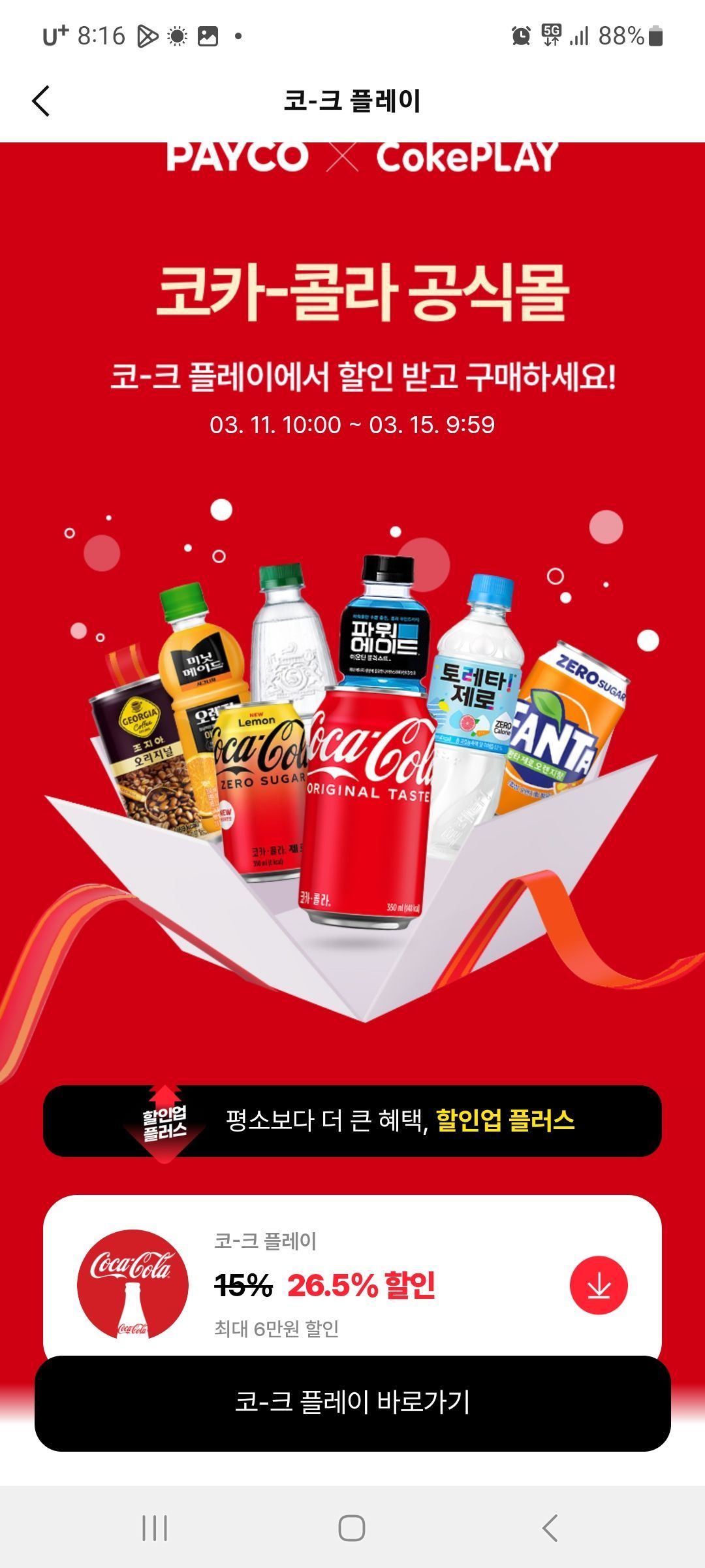 Sử dụng phiếu giảm giá Coca-Cola 3.000 won trên Coke Play