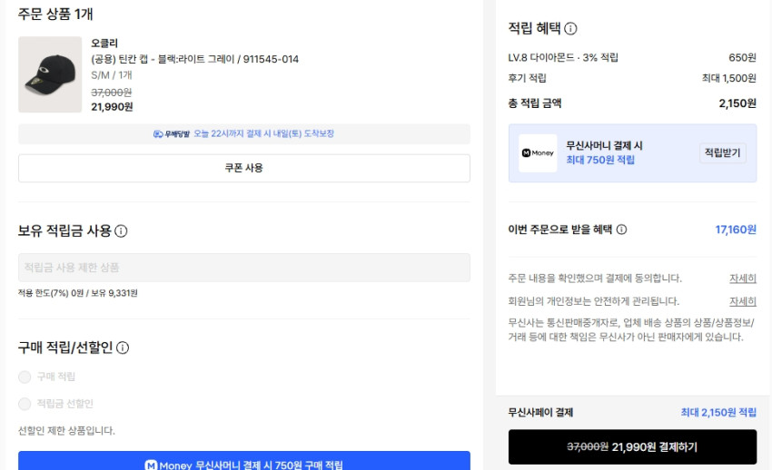 2.1. Oakley: Tincan Cap Black – Giá xấp xỉ 22.000 won