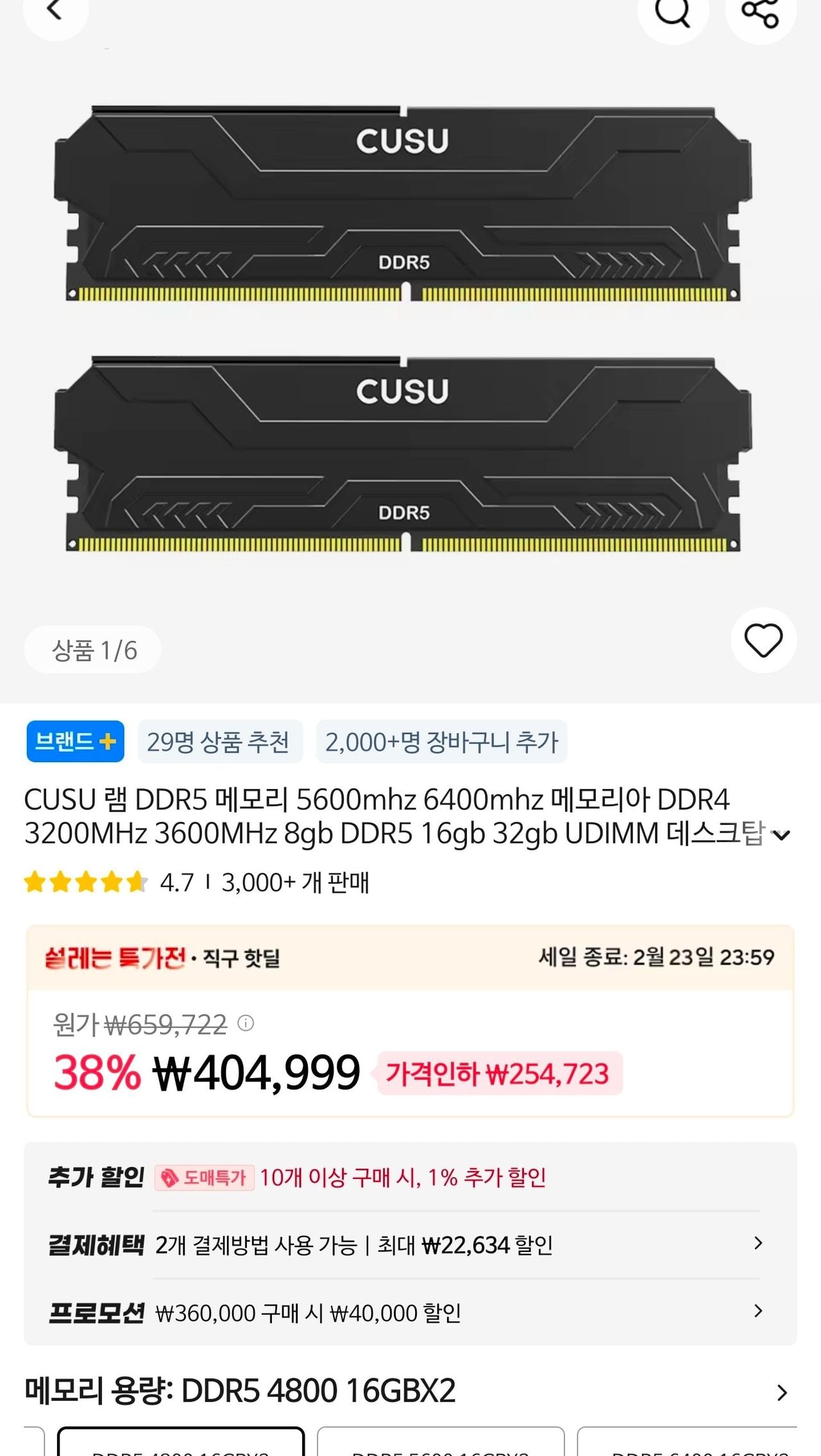 CUSU DDR5 4800 MHz 16g 2ea (32g)