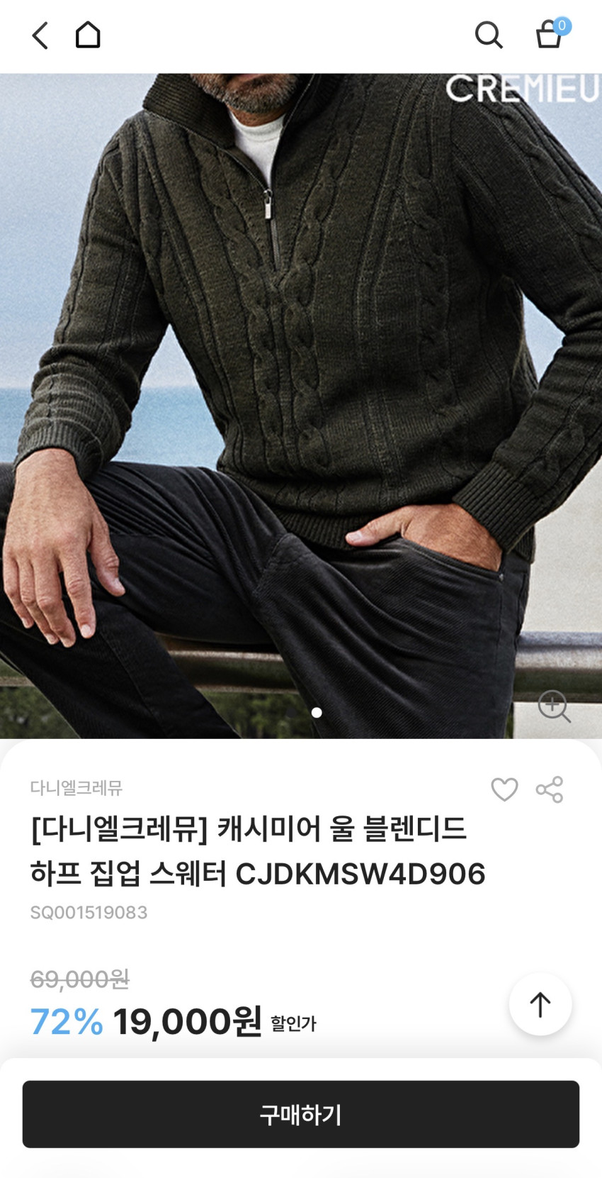 Daniel Cremu Cashmere Len pha trộn một nửa áo len có khóa kéo 19.000 won