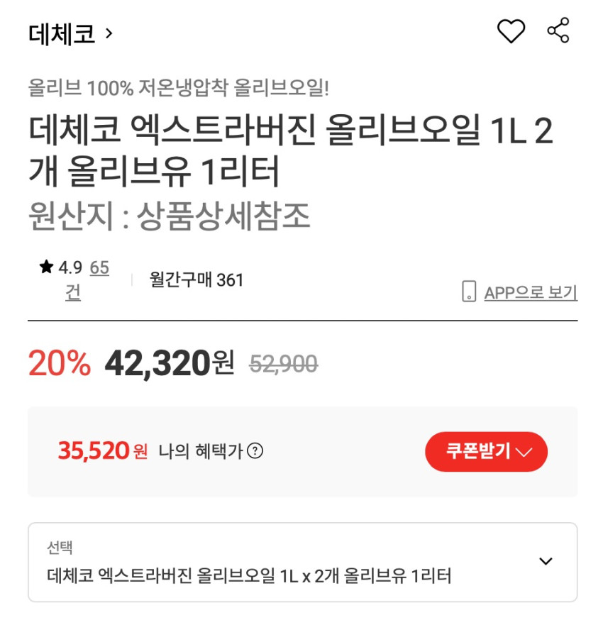 Dầu ô liu nguyên chất DeCecco 1L x 2