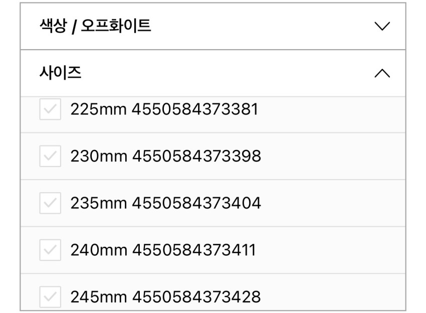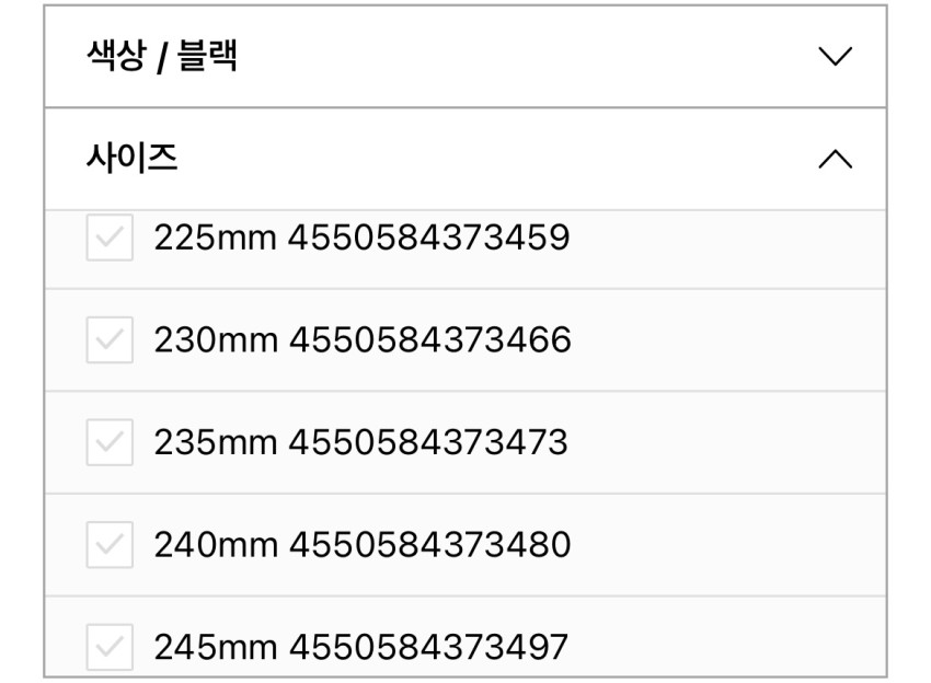 Cổ phiếu màu đen: 225~275mm