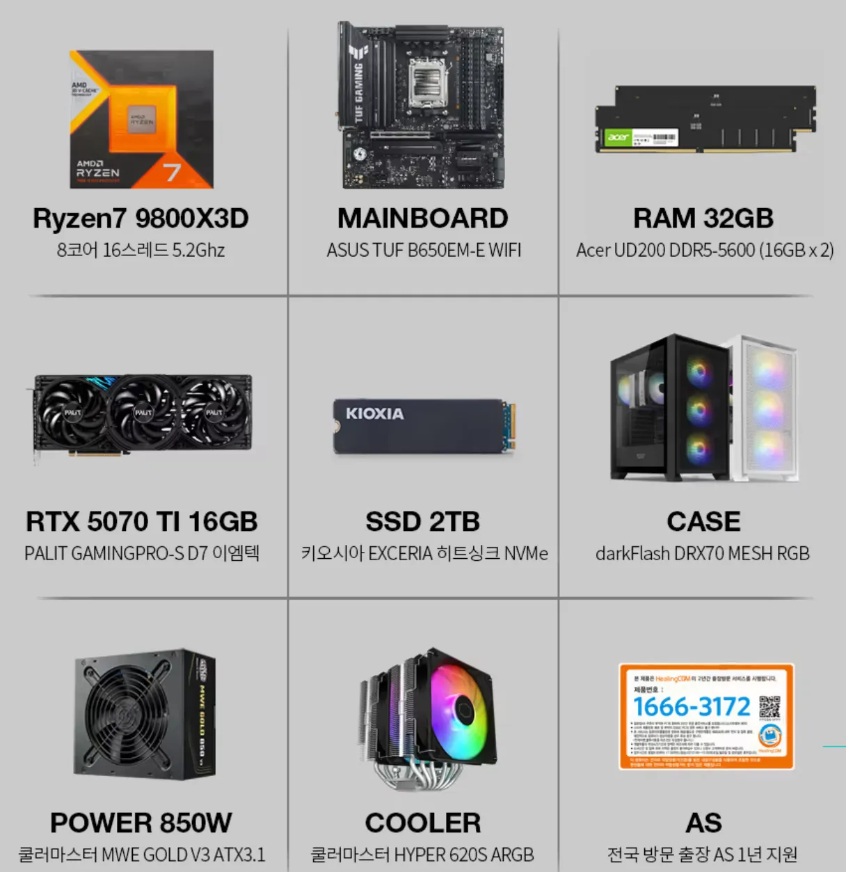 Đơn vị hoàn chỉnh 9800X3D + 5070TI + 32GB + 2TB