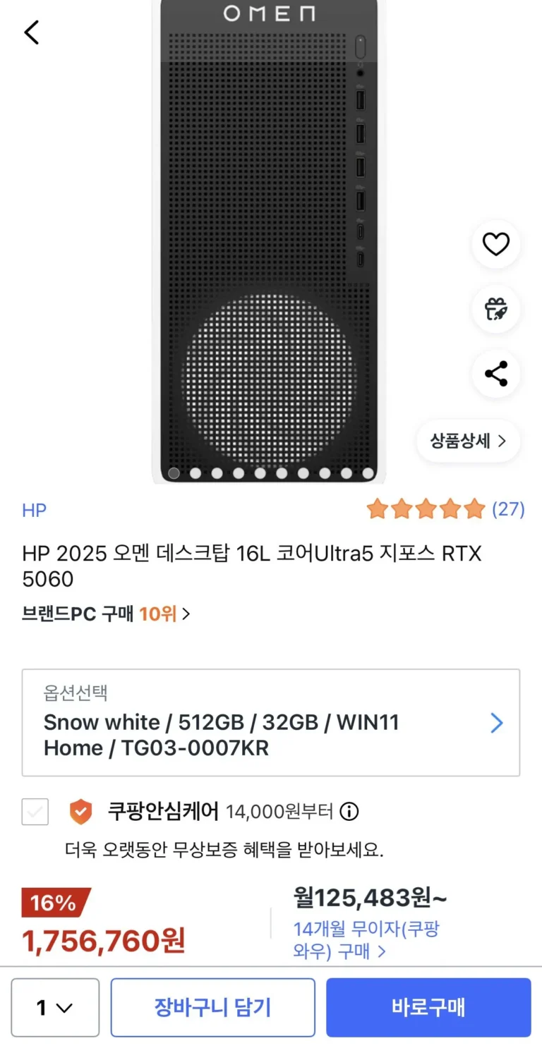 Intel thế hệ thứ 14 14400F + 5060Ti_8G + 16G +1TB Giảm giá + Thẻ (Hyundai/BC) + Giỏ hàng 20.000 WonLà 1,229 triệu won. Bạn phải xem nó trên thiết bị di động để thấy được lợi ích~Bởi vì bộ nhớ D5 hiện tại rất đắt Trong phạm vi giữa 1 triệu won,Được đề xuất cho những ai thích PUBG hoặc LoL Opchi. ​ Đây là dòng tiết kiệm chi phí (model giá rẻ) và có hiệu suất cao hơn AMD 5600.Các công ty chủ yếu định cấu hình 500G như một dòng tiết kiệm chi phí,1TB. rất vui khi thấy nó bao gồm , nhưng xét đến việc nó không được trang bị QLC / DRAM thì hơi đáng tiếc khi chỉ nói rằng nó tốt.Tôi hy vọng bạn mua hàng tốt