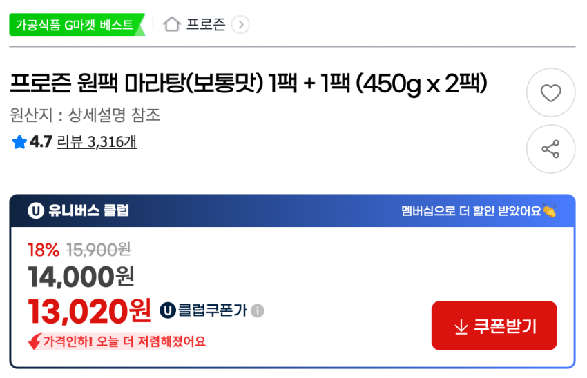 Frozen One Pack Maratang 450g x 2 gói