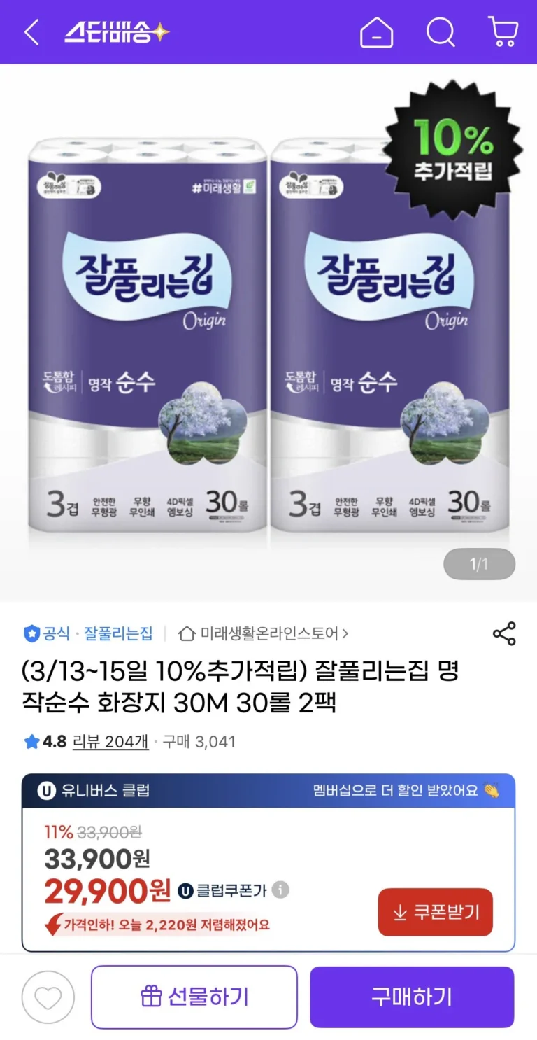 20%+Eucle 10% chồng chéo Nếu bạn sử dụng, nó có giá 12.880 thắng (khoảng 3.220 won mỗi cái)