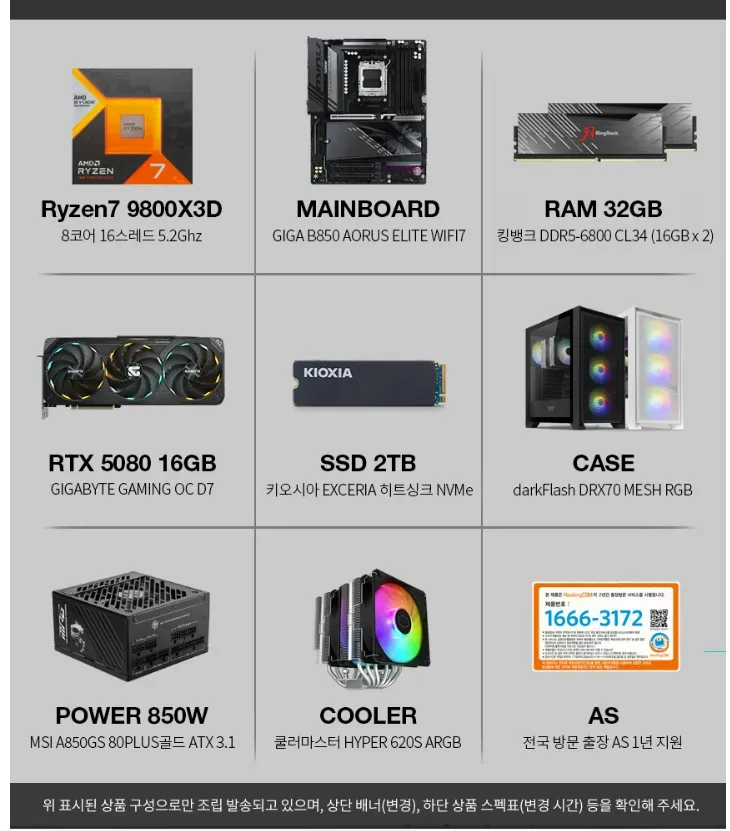 [GMarket] Ryzen 7 9800X3D x GIGABYTE GeForce RTX 5080 Gaming 16GB