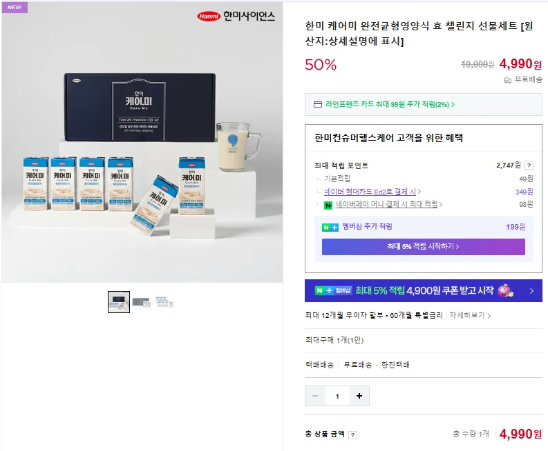 Nếu là thành viên Naver, bạn có thể tích lũy thêm điểm, vì vậy nếu nhận được tất cả số điểm đó, về mặt lý thuyết, bạn có thể mua chúng với giá khoảng 2.000 won.