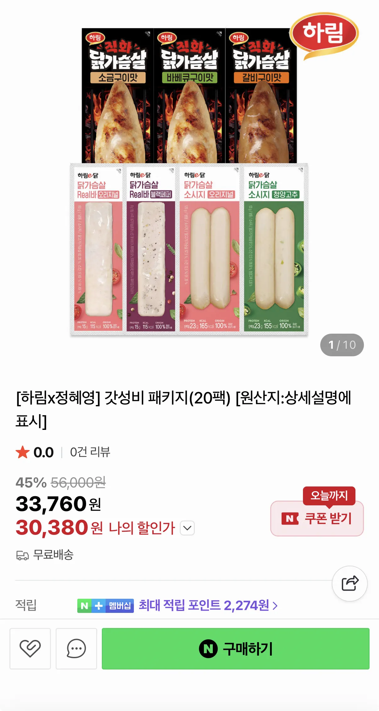 Khi áp dụng phiếu giảm giá thông báo, phí sẽ là 30.380 won và khoảng 1.519 won mỗi gói. Xuất hiện