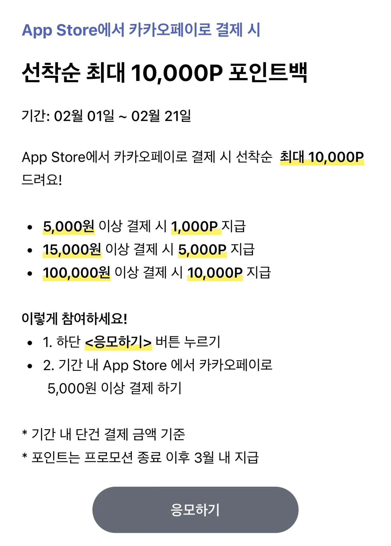– Để biết thêm chi tiết, vui lòng kiểm tra [Trang sự kiện] Phần thưởng Kakao Pay Point.