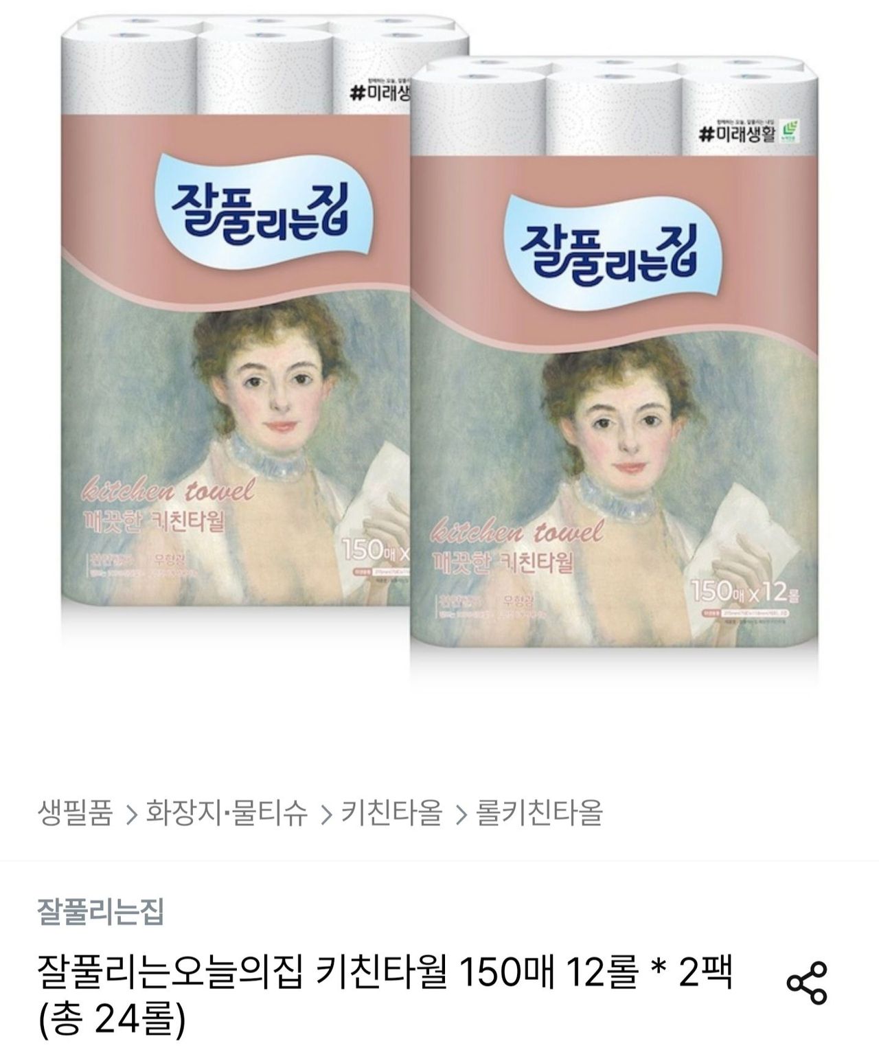 2 gói 12 cuộn, tương ứng 498 won mỗi cuộn với tổng số 24 cuộn
