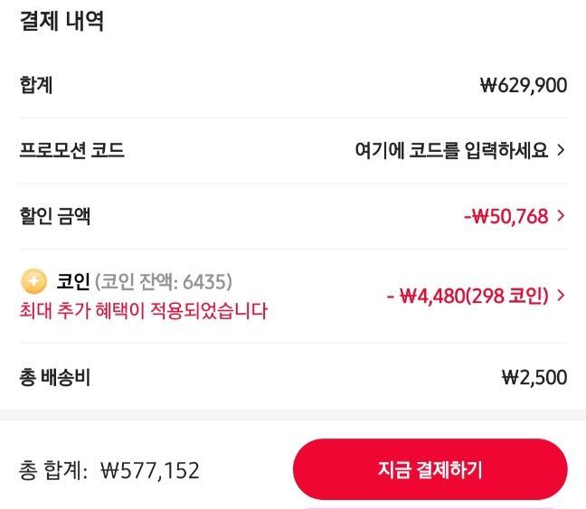 4 phiếu giảm giá 50.000 won và áp dụng một vài xu để giảm giá