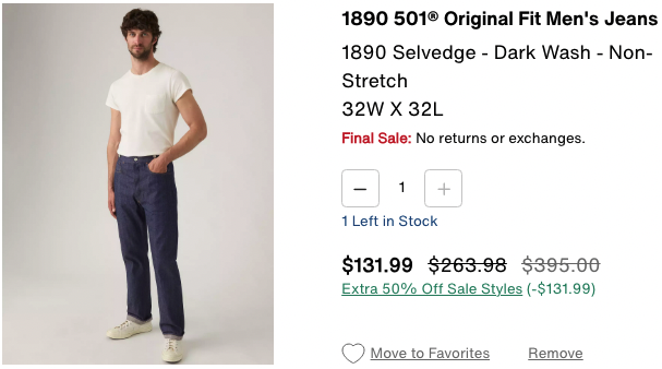 Levi’s LVC, áo xanh, v.v.