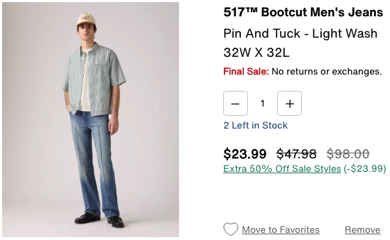 https://www.levi.com/US/en_US/clothing/men/jeans/straight/1890-501-origen-fit-mens-jeans/p/905010022 https://www.levi.com/US/en_US/clothing/men/jeans/loose/554-relaxed-fit-mens-jeans/p/237820006 https://www.levi.com/US/en_US/clothing/men/type-i-jacket/p/A91370001 https://www.levi.com/US/en_US/clothing/men/scout-jacket/p/001LM0000 https://www.levi.com/US/en_US/clothing/men/marker-loose-fit-mens-jeans/p/001LN0001 https://www.levi.com/US/en_US/clothing/men/jeans/loose/anchor-relaxed-mens-jeans/p/0033V0000 https://www.levi.com/US/en_US/clothing/men/jeans/bootcut/517TM-bootcut-mens-jeans/p/005170233 https://www.levi.com/US/en_US/clothing/men/jeans/bootcut/517TM-bootcut-mens-jeans/p/005170285 https://www.levi.com/US/en_US/clothing/men/shirts/classic-standard-fit-western-shirt/p/857450237 https://www.levi.com/US/en_US/clothing/men/outerwear/relaxed-fit-trucker-jacket/p/A57820068 https://www.levi.com/US/en_US/clothing/men/outerwear/type-iii-sherpa-trucker-jacket/p/163650272 https://www.levi.com/US/en_US/clothing/men/outerwear/sansome-vest/p/A85800000
