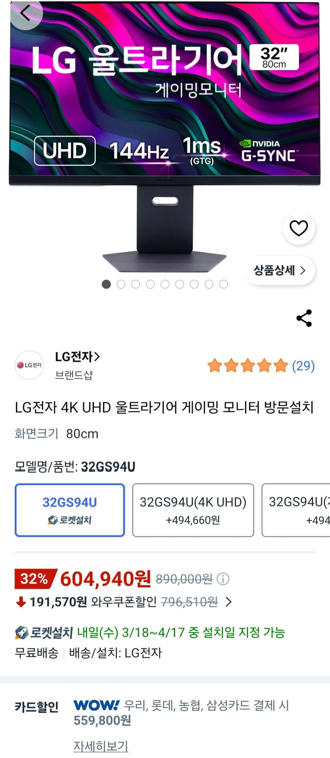 4K UHD 144hz 1ms LG Gear 32 inch