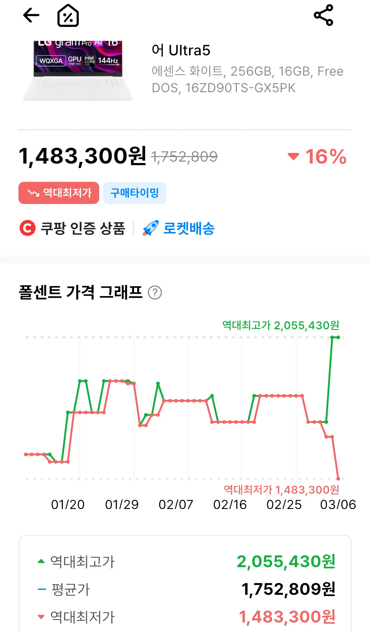 16 inch / 226V (Luna) / SSD 256GB (khe cắm mở rộng + 1) / RAM 16GB