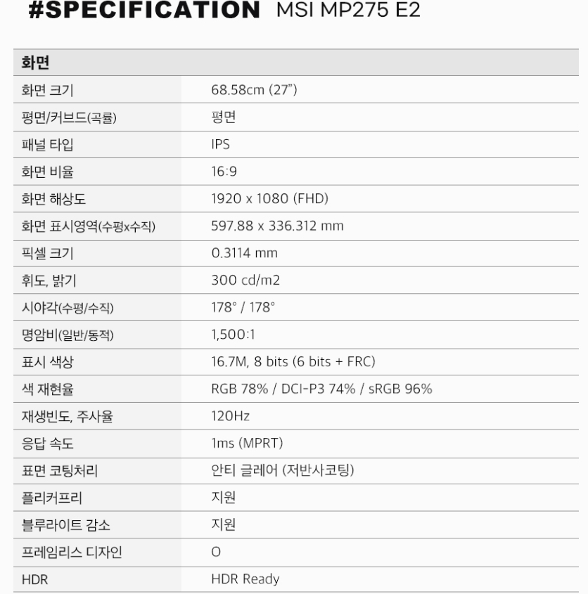 image.png [G Market] MSI MP275 E2 IPS 120 tích hợp loa, bảo vệ mắt hoàn hảo (123.130 KRW) (miễn phí)