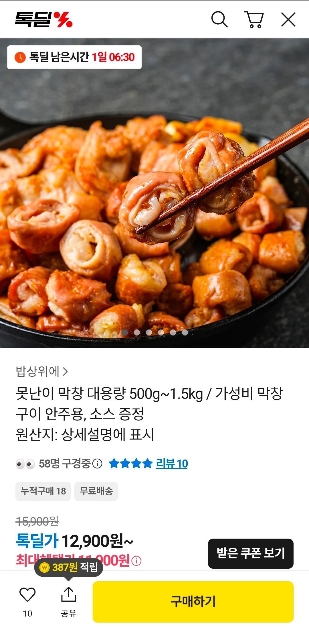 Bắt đầu từ 500 gramBạn phải mua 1,5 kg để nhận được phiếu giảm giá 5.000 won nên rẻ nhất.Xin lưu ý rằng chỉ có 10 đánh giá!!