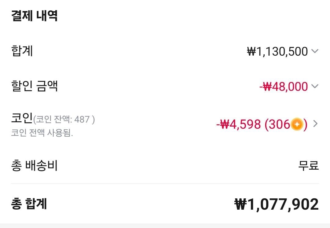 Anh ấy không sử dụng phiếu giảm giá. Coin + Kahalo 1.077.000 won