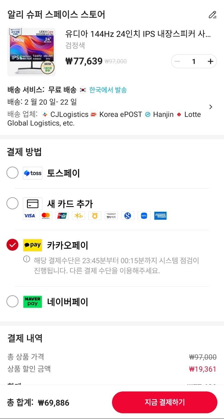Giảm giá xu 2% + mã khuyến mãi AEKP04, SEOL04 Nếu bạn nhận được (giảm giá 6.200 won), số tiền đó sẽ là 69.886. Thật đáng tiếc vì đó là JC Hyun nhưng tôi nghĩ với mức giá này thì có thể chấp nhận được.