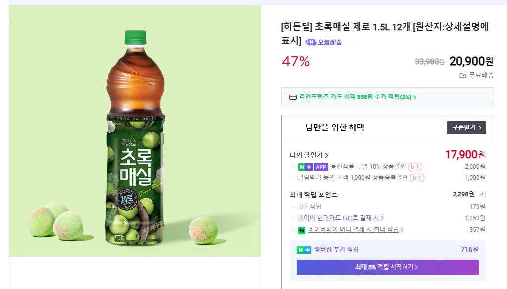 Một chai 1,5 lít có giá khoảng 1.490 won? Nếu rẻ thì thường như thế này.