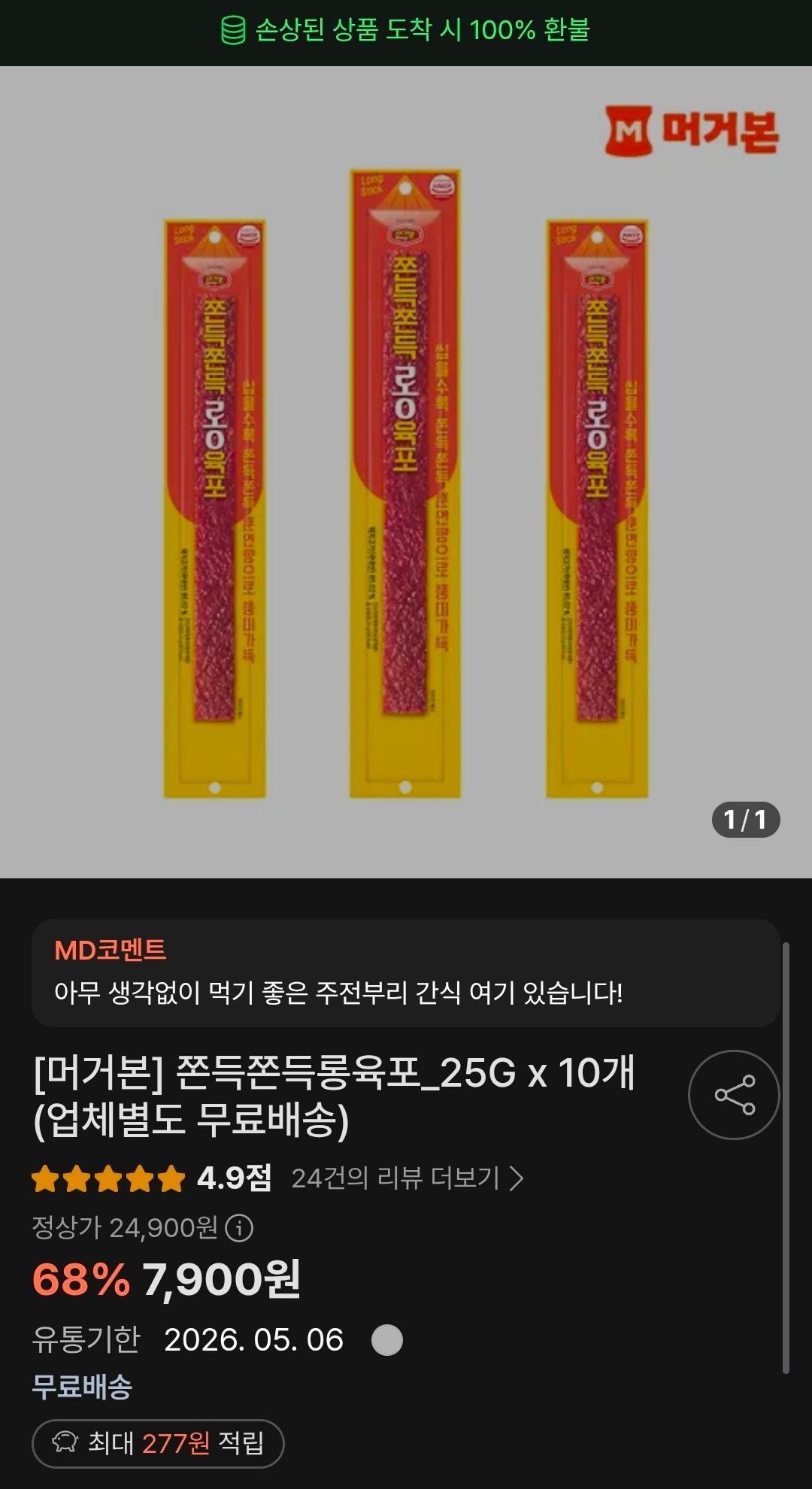 85% Thịt lợn khô nội địa Truy cập Toss, nhận phiếu giảm giá, thanh toán bằng Toss Pay và được giảm giá 9%. Giảm giá thêmCó thêm điểm khi chia sẻ liên kết, nhưng tôi đã sử dụng phiếu giảm giá nên không có liên kết.Tôi muốn nhai một ít thịt nên tìm kiếm và thấy nó rẻ nên tôi đăng.