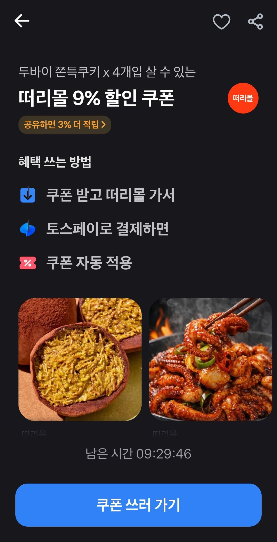 Truy cập Toss, nhận phiếu giảm giá, thanh toán bằng Toss Pay và được giảm giá 9%. Giảm giá thêm